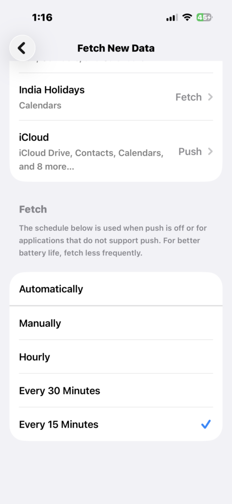 3. If Push is unavailable, set Fetch to every 15 minutes.