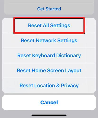 - Choose Reset All Settings.