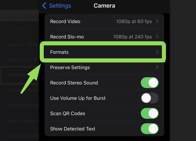 Change Camera Format to High Efficiency